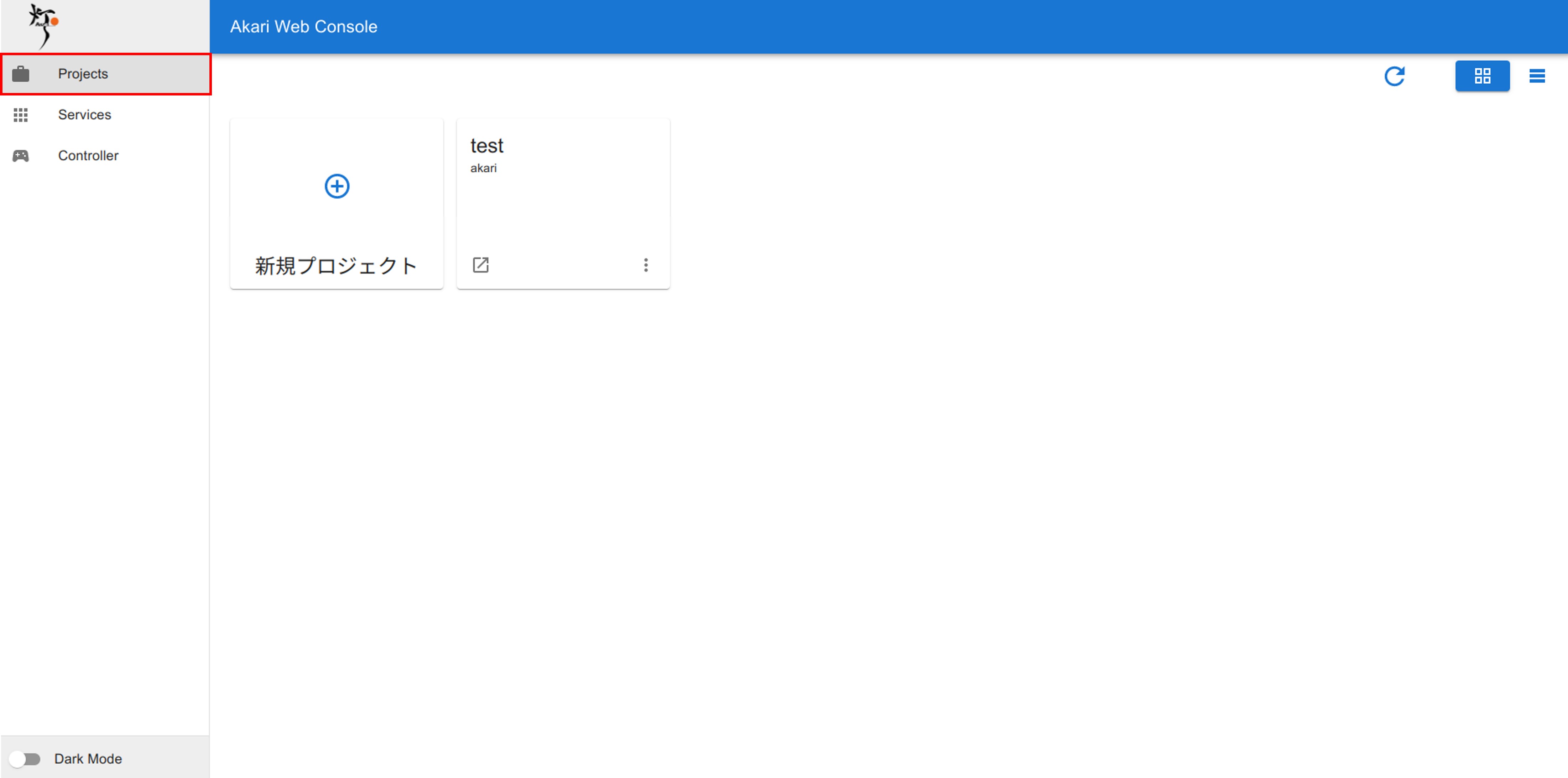 ここでAKARIのプロジェクト一覧の表示形式をカード形式とリスト形式に切り替えできます。