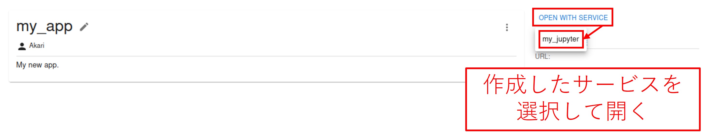 ここでは、 サービスを使ってみよう から JupyterLabかVisual Studio Codeのサービスをあらかじめ起動している前提 で説明します。