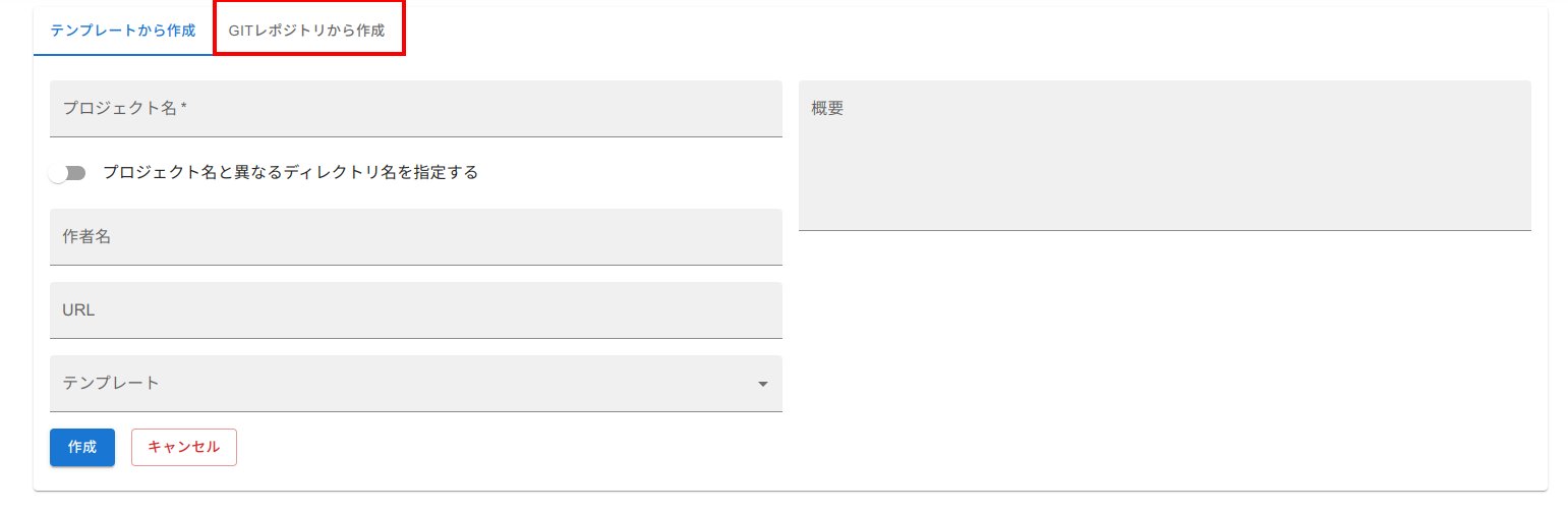 「GITレポジトリから作成」を選択し、タブを切り替えます。